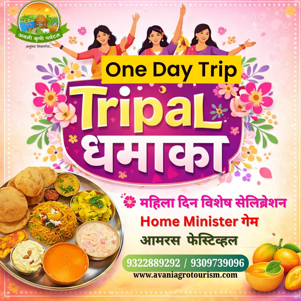 Avani Agro Tourism येथे महिला दिन आणि आमरस पार्टी म्हणजे आनंद, चव आणि निसर्गाचा सुंदर संगम आहे. हिरव्यागार शेती फार्ममध्ये पारंपरिक स्वागत, मनोरंजक खेळ, स्पर्धा आणि महिलांसाठी खास सन्मान सोहळा आयोजित केला जातो. ताज्या आंब्यांचा स्वादिष्ट आमरस, गरमागरम पुरी आणि ग्रामीण जेवण यासह बैलगाडीतून कृषी सहल हा अविस्मरणीय अनुभव ठरतो. कुटुंबासोबत आनंद साजरा करण्यासाठी उत्तम ठिकाण!